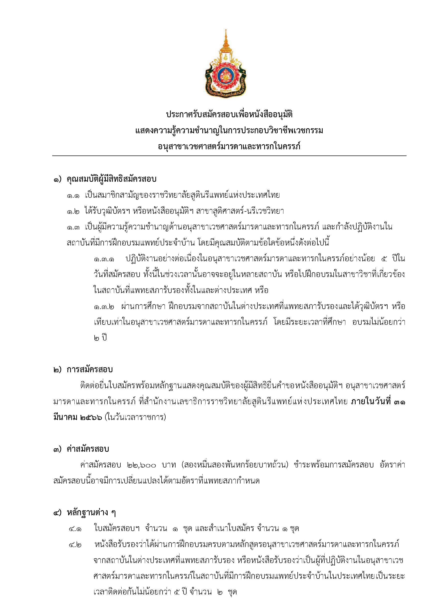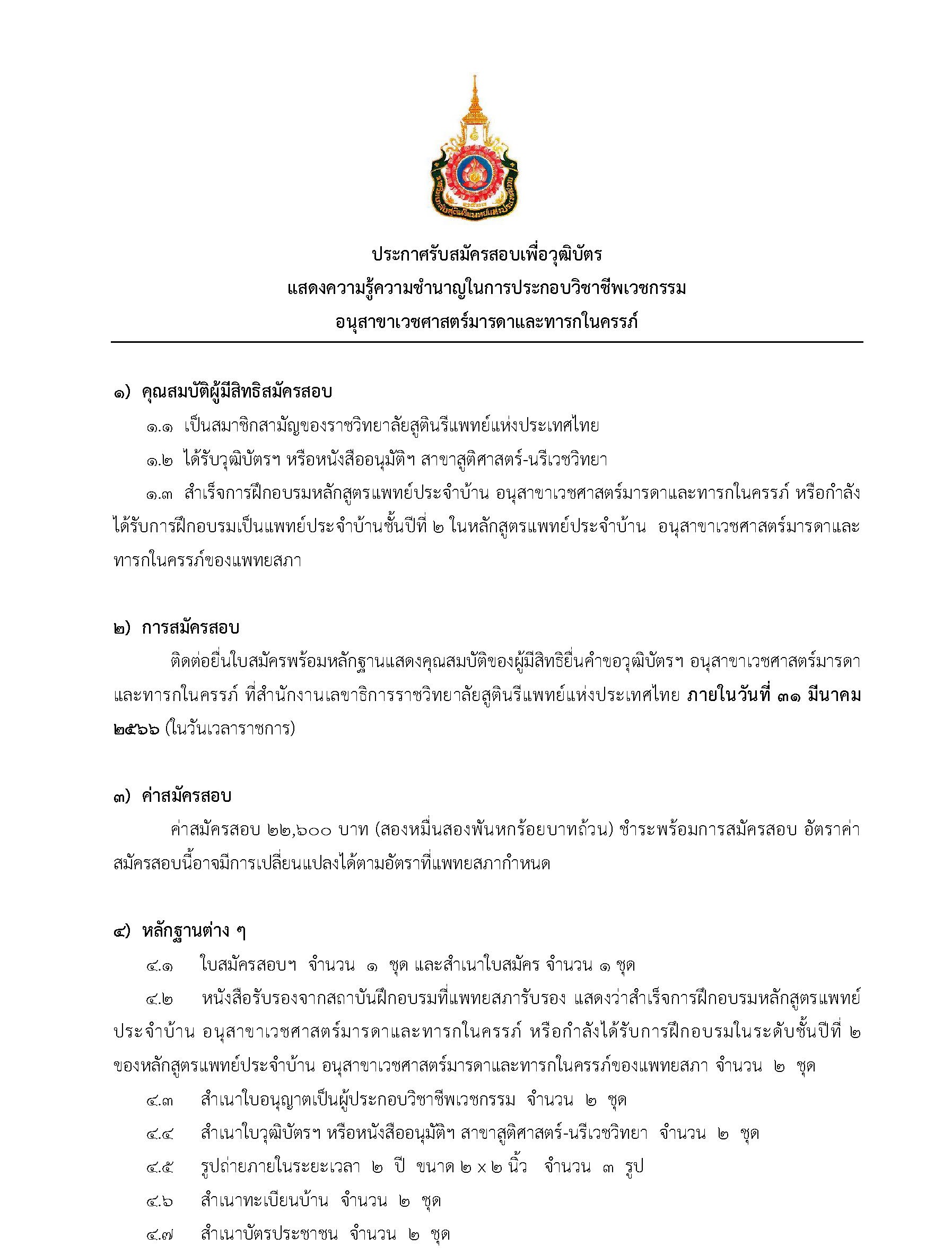 ประกาศรับสมัครสอบเพื่อหนังสืออนุมัติ อนุสาขาเวชศาสตร์มารดาและทารกในครรภ์
