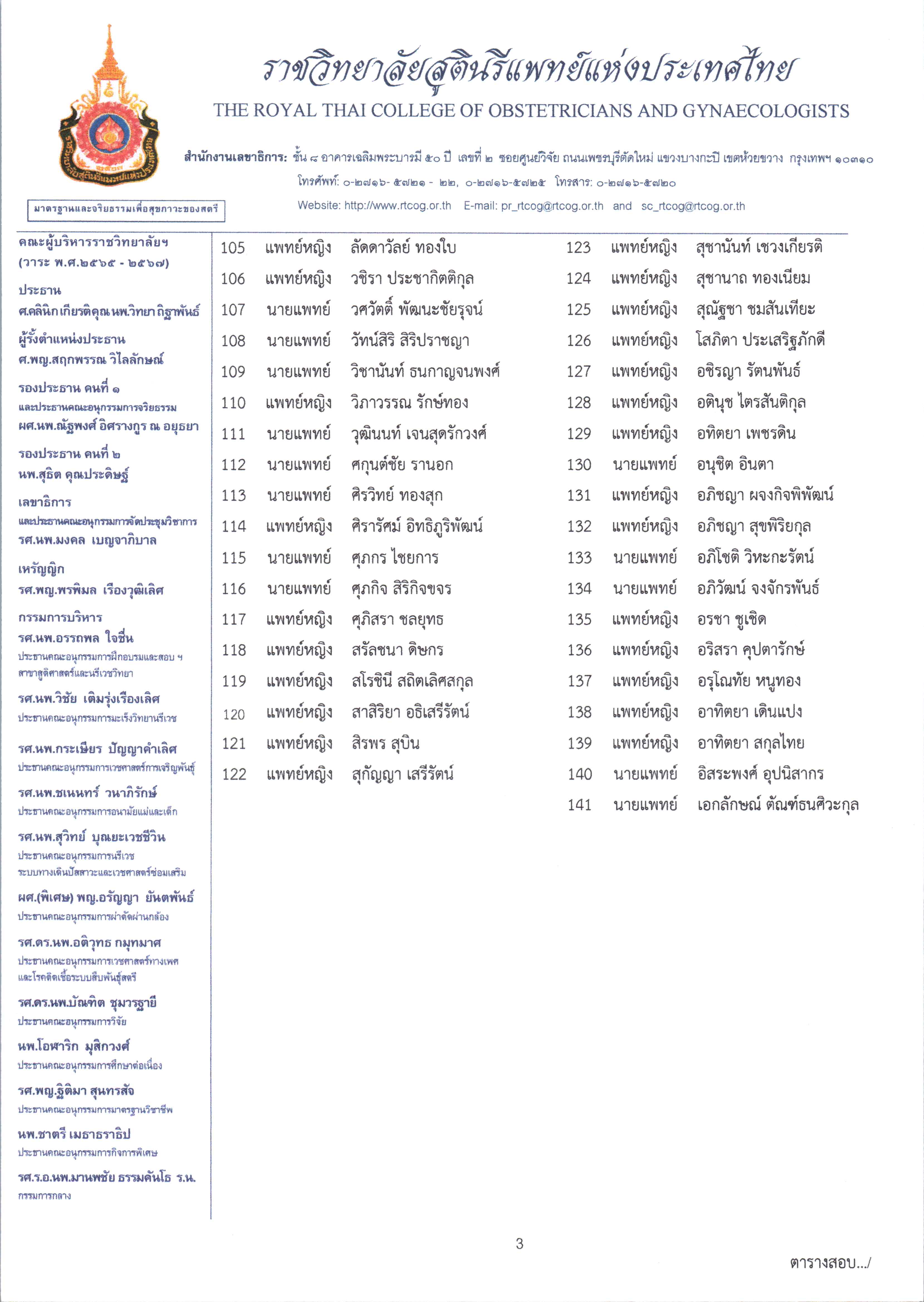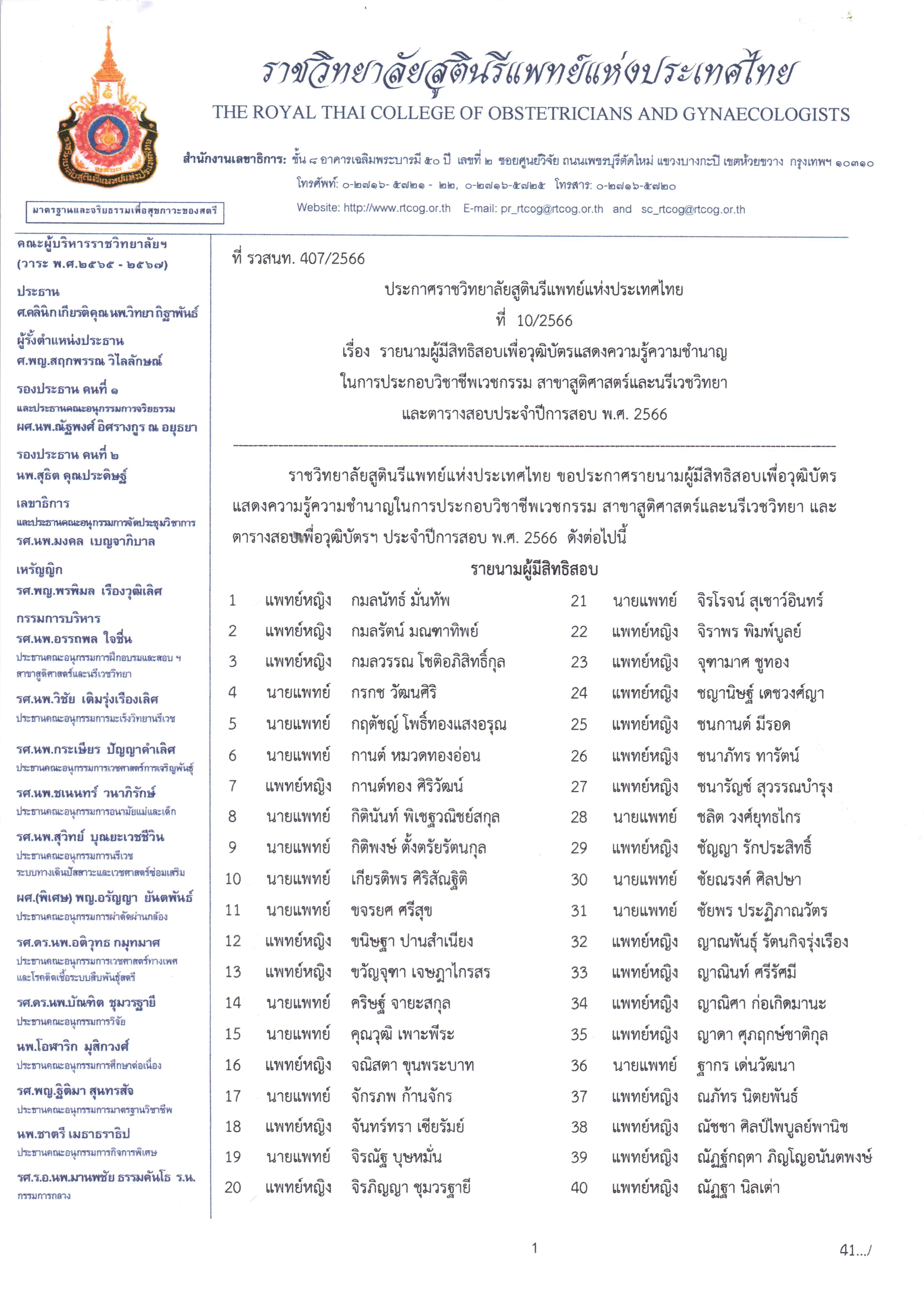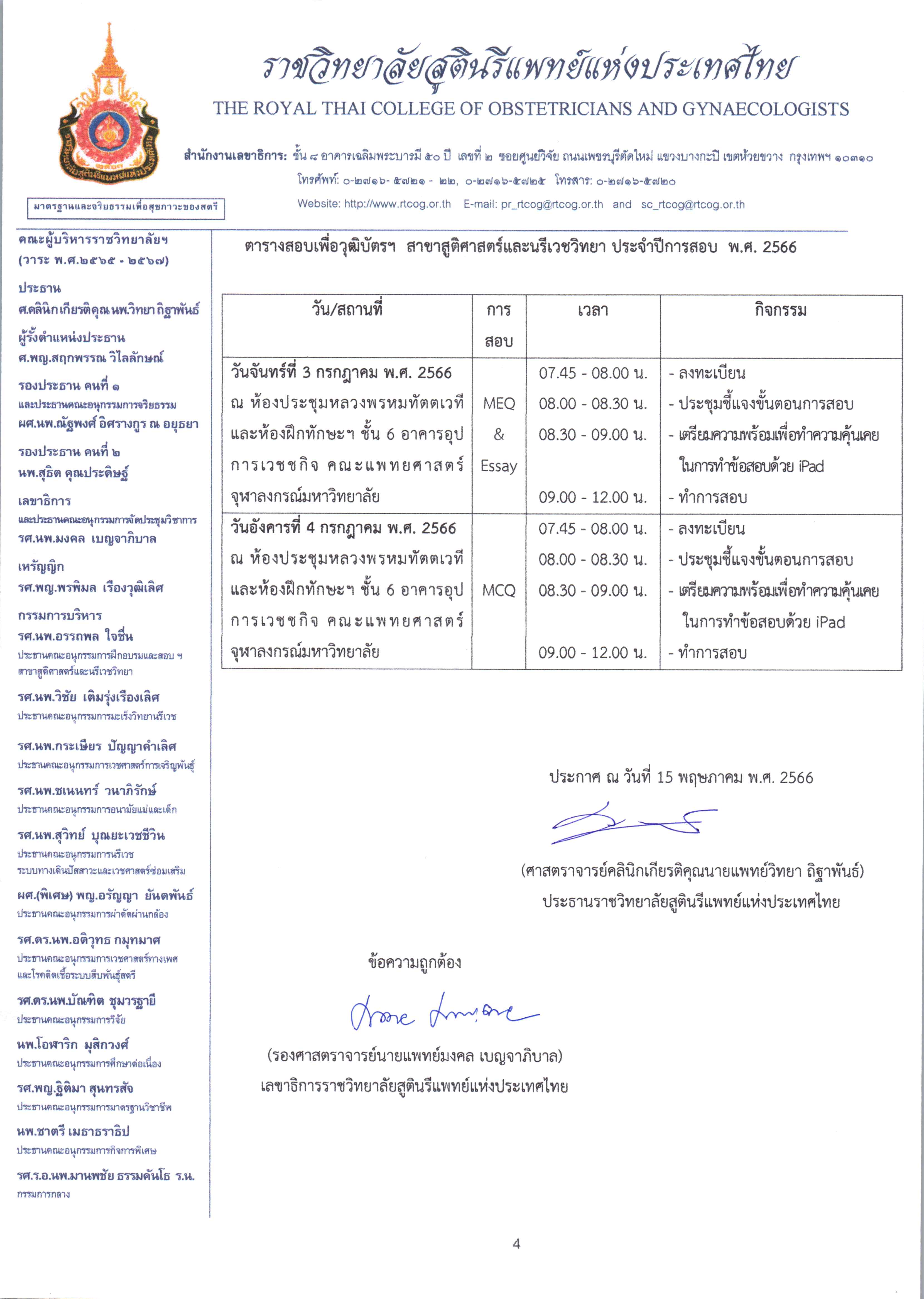 ประกาศ รายนามผู้มีสิทธิสอบเพื่อวุฒิบัตรแสดงความรู้ความชำนาญฯ สาขาสูติศาสตร์และนรีเวชวิทยา และตารางสอบประจำปีการสอบ พ.ศ. 2566