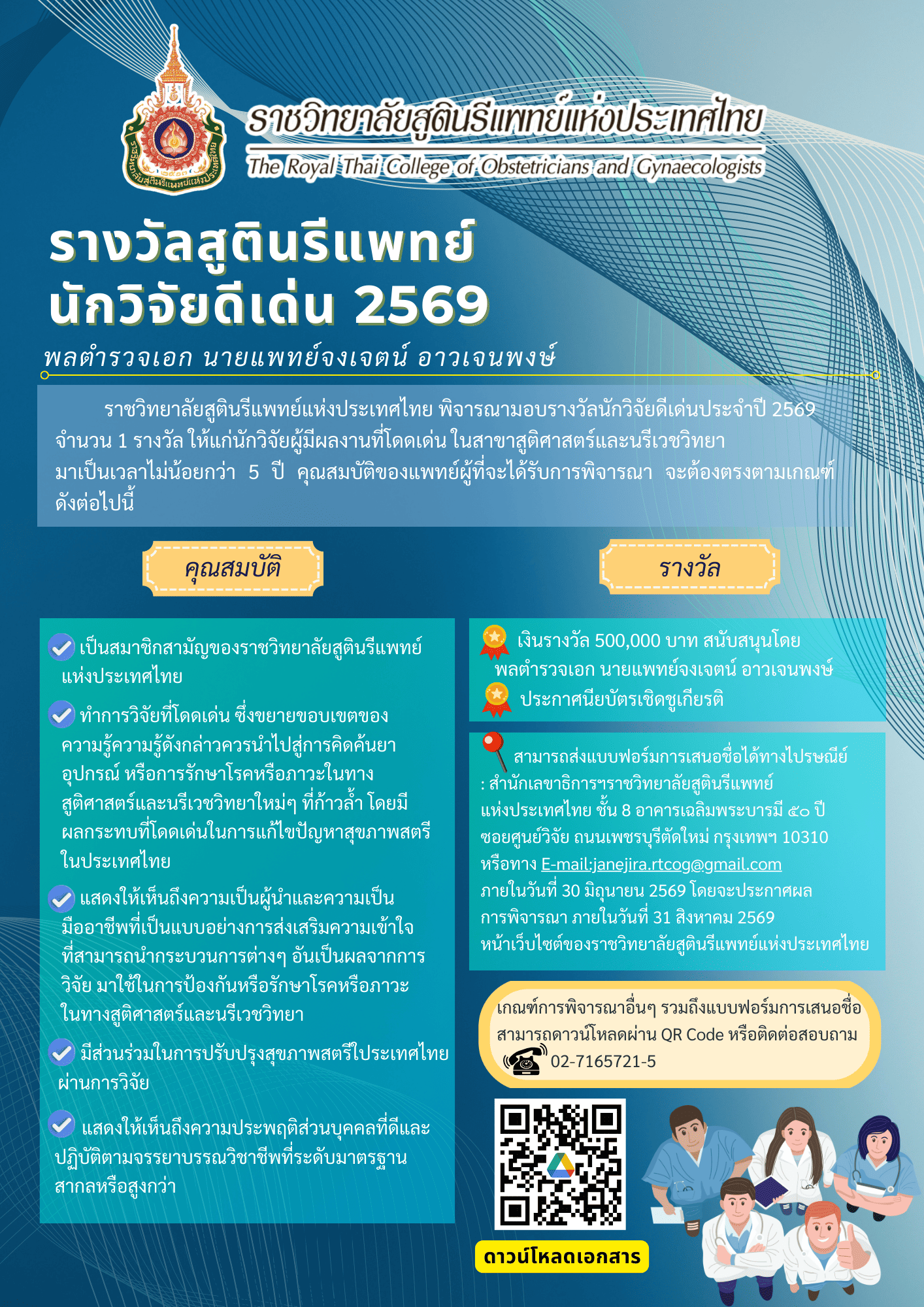 ประชาสัมพันธ์รางวัลสูตินรีแพทย์นักวิจัยดีเด่น พลตำรวจเอก นายแพทย์จงเจตน์ อาวเจนพงษ์ ประจำปี 2569