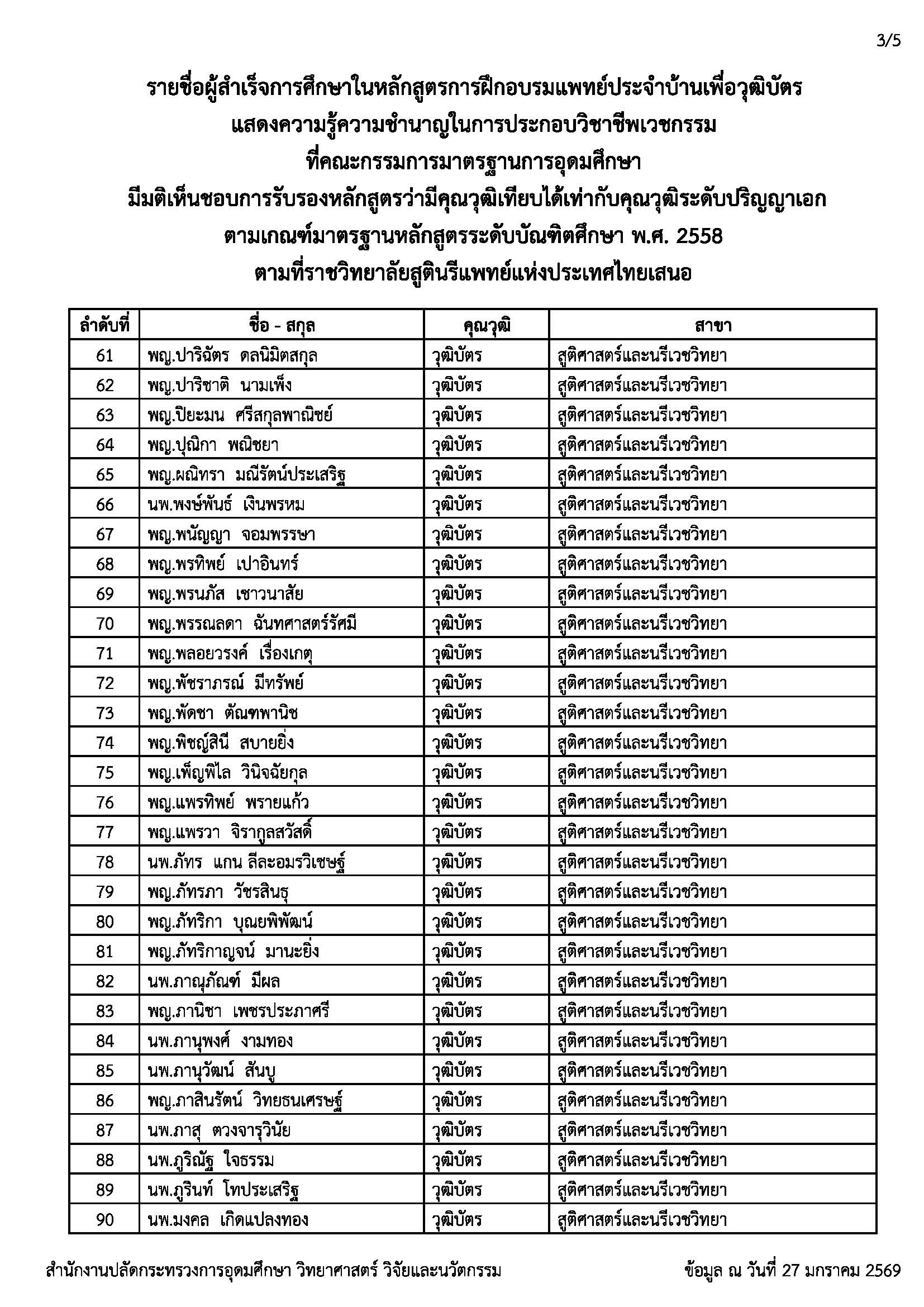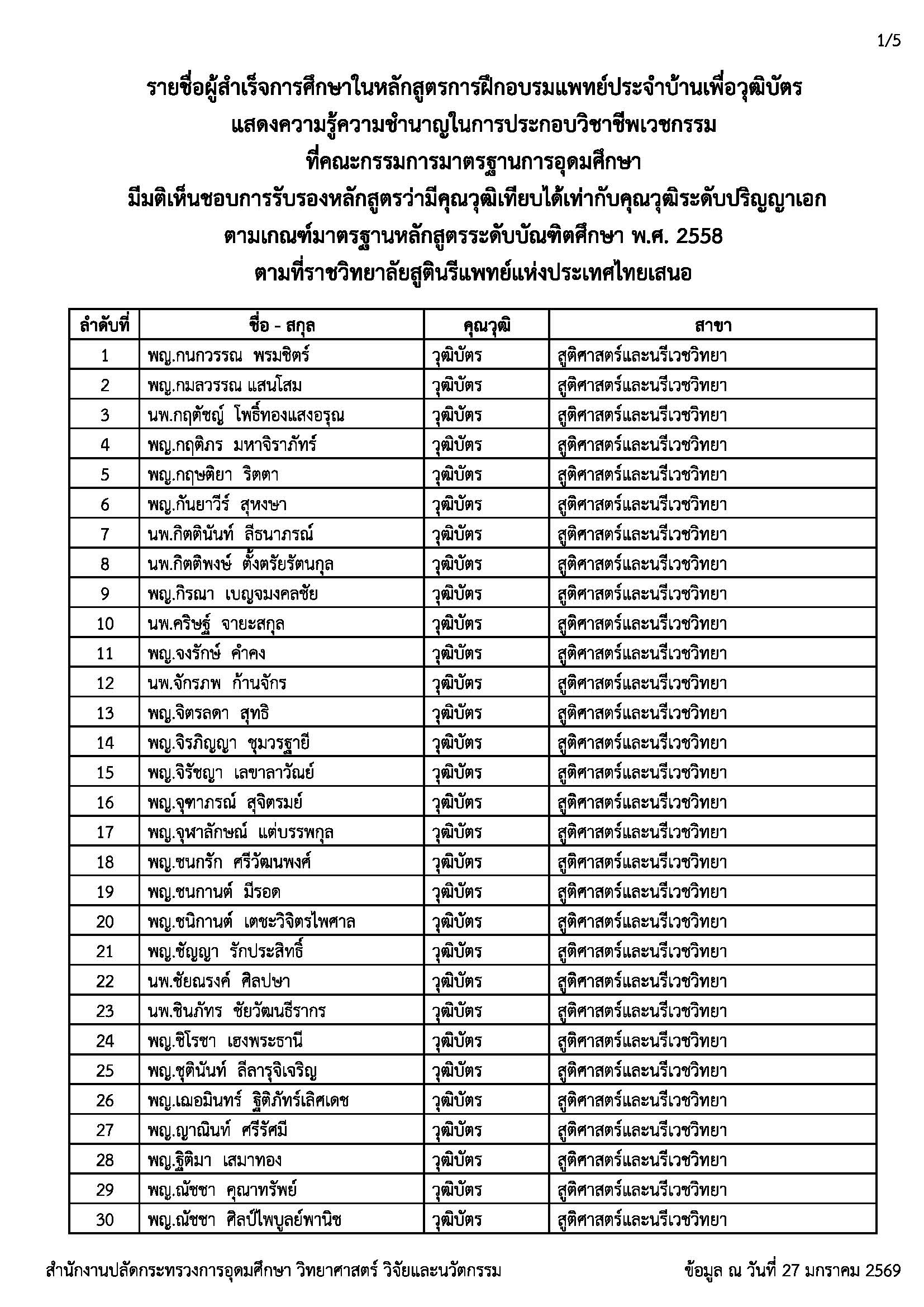 ประกาศรายชื่อที่ผ่านการรับรองขอเทียบวุฒิบัตรฯ เทียบเท่าวุฒิระดับปริญญาเอก กับทางสำนักงานปลัดกระทรวงการอุดมศึกษา วิทยาศาสตร์ วิจัยและนวัตกรรม (อว.)ปี พ.ศ. 2568 ตามรายชื่อแนบ