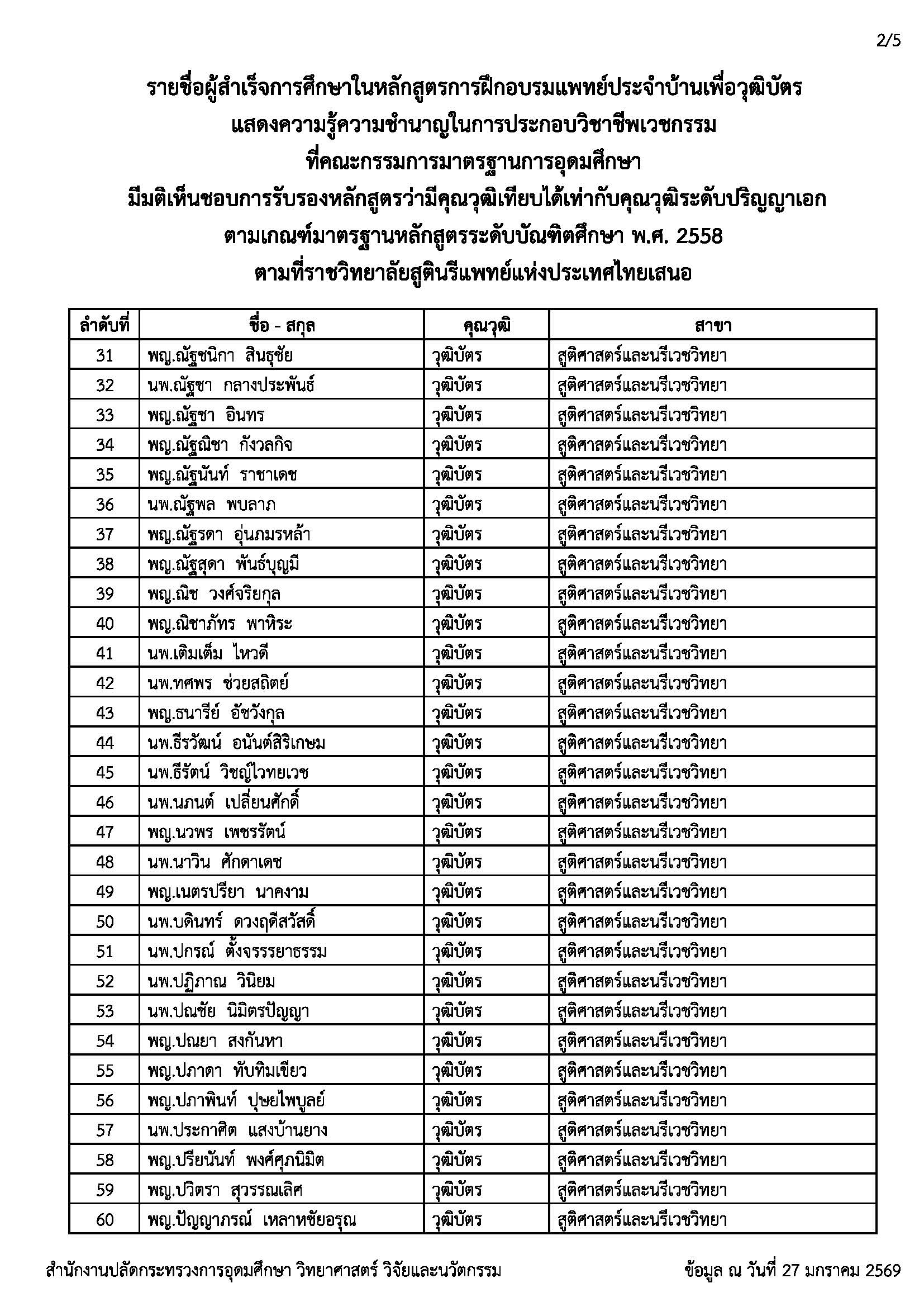 ประกาศรายชื่อที่ผ่านการรับรองขอเทียบวุฒิบัตรฯ เทียบเท่าวุฒิระดับปริญญาเอก ปี พ.ศ. 2568