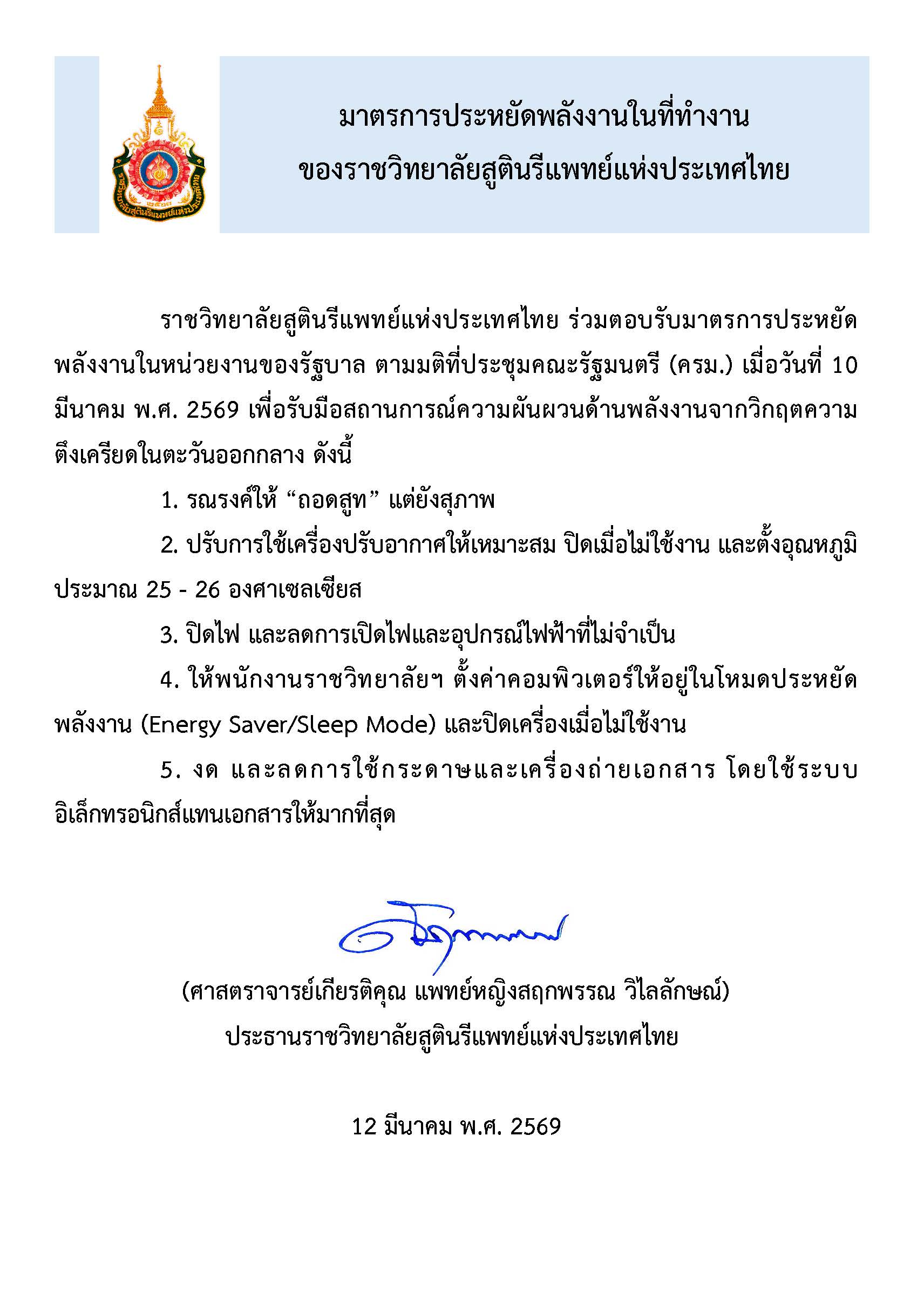 มาตรการประหยัดพลังงานในที่ทำงานของราชวิทยาลัยสูตินรีแพทย์แห่งประเทศไทย